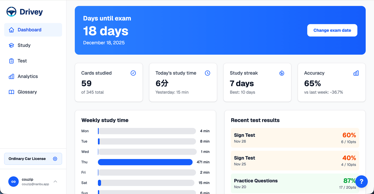 Drivey is an application that makes studying for your driver's license efficient and enjoyable.